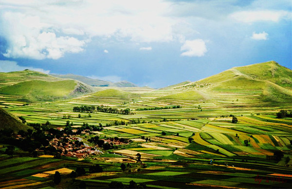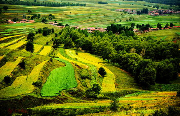 梯田是北方不多見的風(fēng)光之一,如果不是草原天路,不知道還要跑多遠才能看到這樣的美景。夏天的顏色還只有翠綠色的單一,但依然能看得見分明的層次。