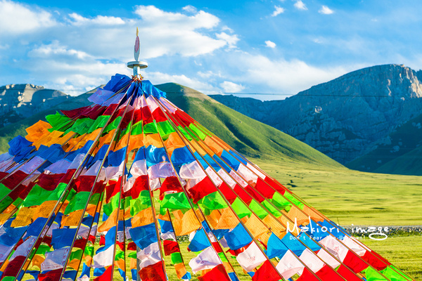 經幡隨風飄動,每飄動一次,吉祥祝福的意愿就飄向遠方。我坐在不遠處的草坪上,帶著虔誠凝視了許久。
