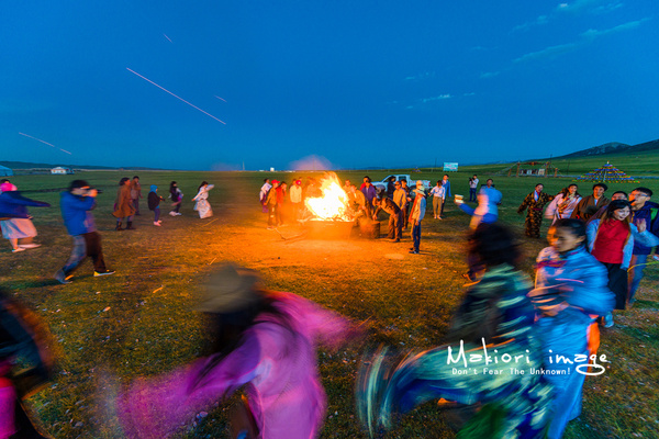 夜色襲來,天空的云彩也被陽光染上了一層緋紅,大地開始沉睡,山上放牧歸來的牛羊時不時發出幾聲叫喚。但是,一場別開生面的草原party卻即將上演。