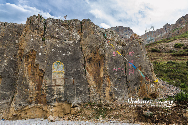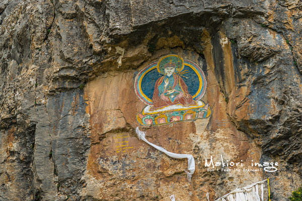 仔細一看,不少石壁上經當地的藏民之手畫上了一幅幅栩栩如生的壁畫。人物形態惟妙惟肖,色彩艷麗線條穩重。問了下當地人,才得知這里的石林在形成的過程中遭遇了青藏高原抬升造成的缺水、干旱,水蝕過程未能完成,而是經過漫長的風蝕后,形成了現在這樣的獨特風貌。