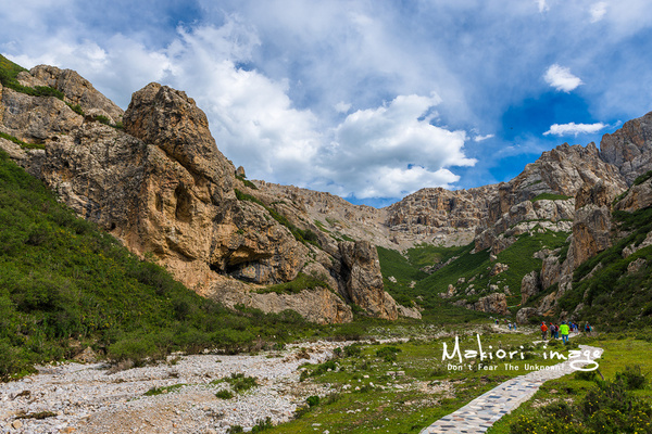 哈熊溝景區是開放式景區,目前不收門票。這里也是當地藏民休閑娛樂的地方,像我們這種來看風景的游客還真不多。從入口往里走,新修的棧道通向溝內深處,山間清泉溪流,清涼透澈。數以百計的石林就在山坡中,石林色彩摻雜,有淡雅的、有濃烈的,渾然天成。